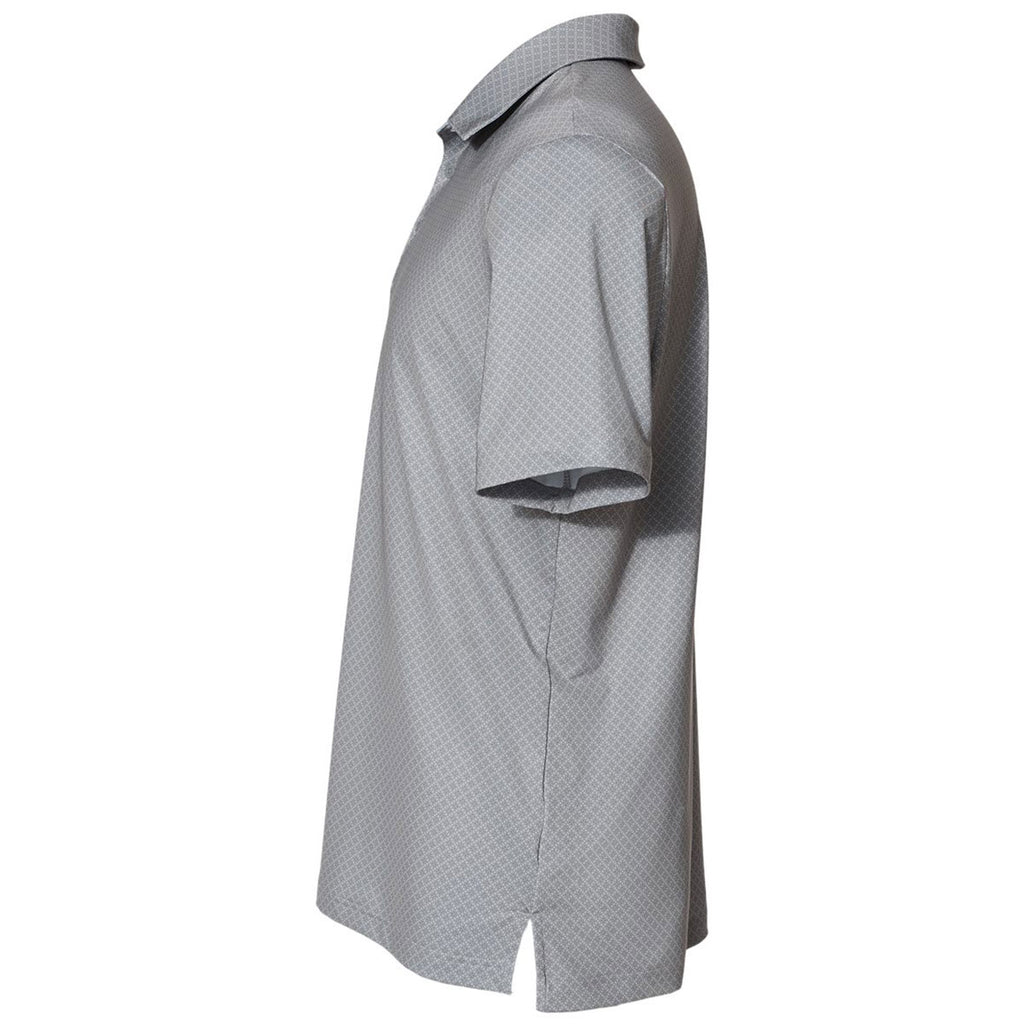 Enjoy a custom look with the Adidas Men's Grey Three/Team Royal/Navy Diamond Dot Print Sport Shirt. A great sport shirt is a welcomed addition to any wardrobe and this unique dot print shirt is no exception. Add a company logo to serve as employee apparel or uniforms that are clean, crisp, and offer a classic look. Made of a recycled polyester and elastane blend this sport shirt has moisture management properties and a hydrophilic finish. The self collar and three button placket keeps the look professional and the UPF 50+ keeps you protected whether in the boardroom or on the back nine.