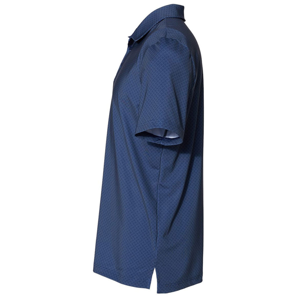 Enjoy a custom look with the Adidas Men's Navy Blue/White/Grey Three Diamond Dot Print Sport Shirt. A great sport shirt is a welcomed addition to any wardrobe and this unique dot print shirt is no exception. Add a company logo to serve as employee apparel or uniforms that are clean, crisp, and offer a classic look. Made of a recycled polyester and elastane blend this sport shirt has moisture management properties and a hydrophilic finish. The self collar and three button placket keeps the look professional and the UPF 50+ keeps you protected whether in the boardroom or on the back nine.