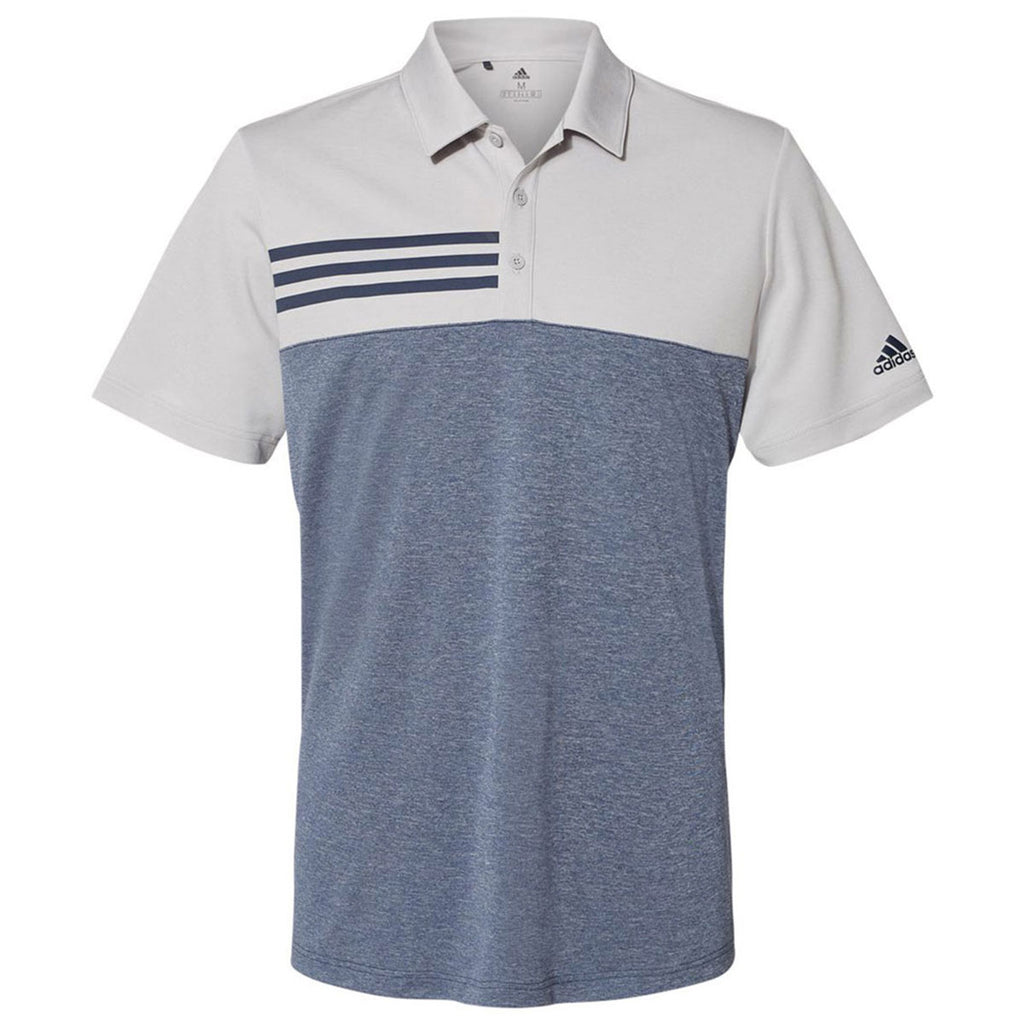 adidas Men's Grey Two Heather/Collegiate Navy Heather Heathered Colorblock 3-Stripes Sport Shirt