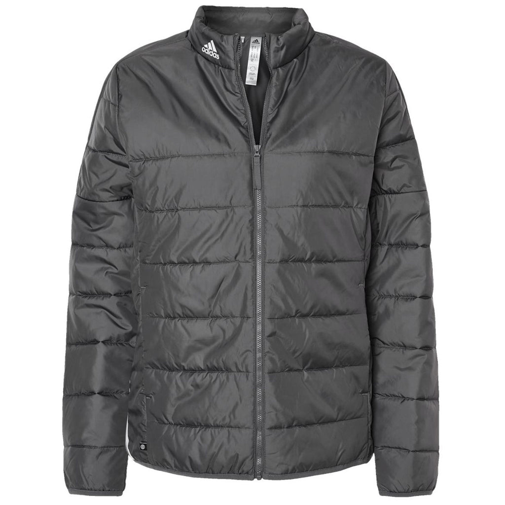 Your brand will always be visible in the cold when you add your company's custom logo to the Adidas Women's Grey Five Puffer Jacket. The perfect personalized piece for taking on inclement conditions, classic Adidas stripes on the sides add extra visual impact to this cold weather classic.This product cannot ship outside of the United States.