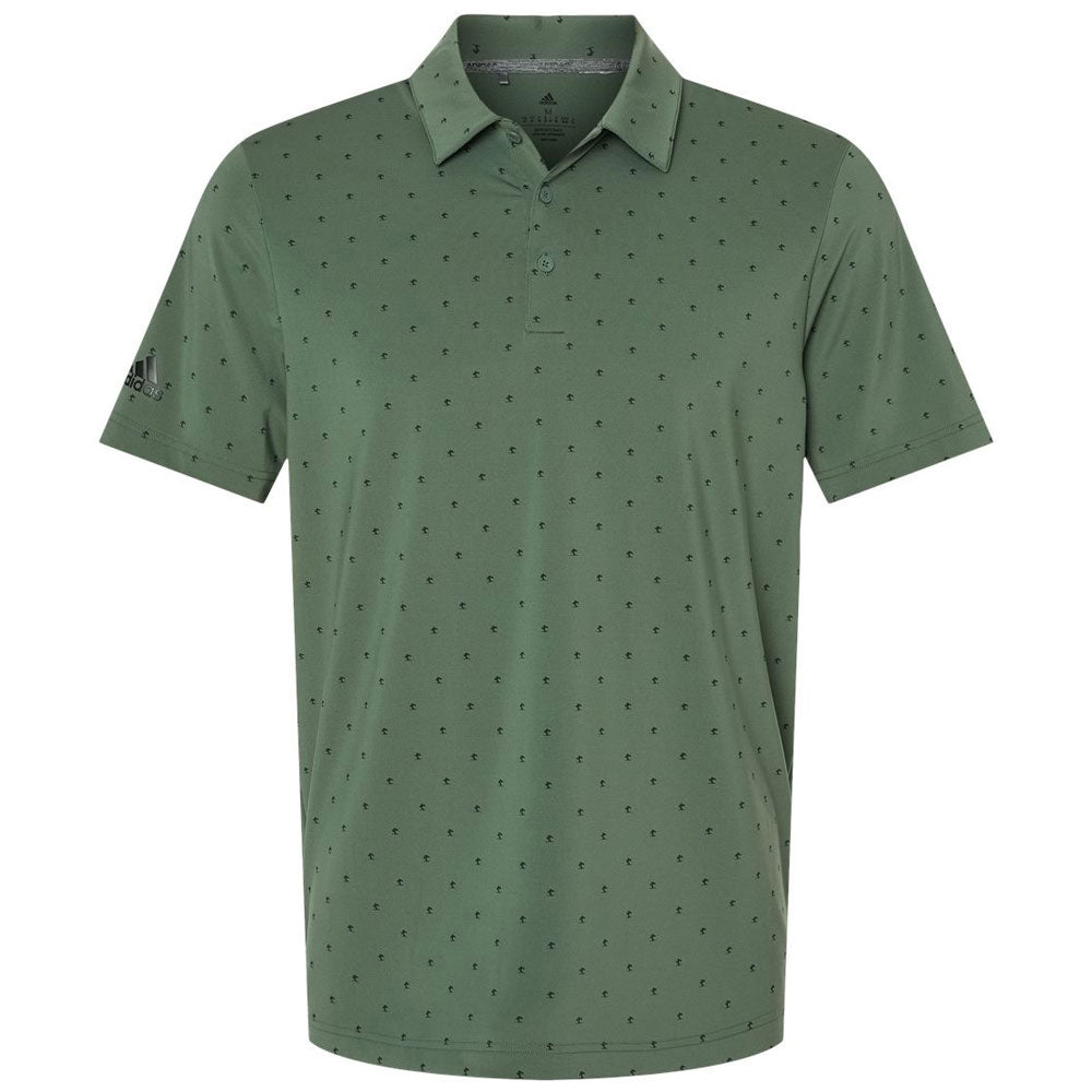 Great for professional events, golf outings, and so much more, the adidas Men's Green Oxide/Black Pine Tree Polo is ready to take your company's custom logo to the next level. The subtle print adds visual impact to this classic piece, which features a button-down placket and special moisture-wicking fabric.