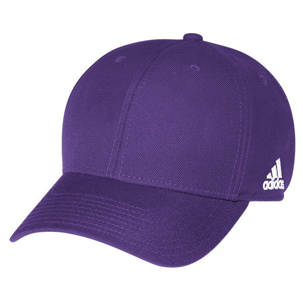 Celebrate your company's team spirit by giving the adidas Purple Structured Adjustable Cap during the holiday season. You attach the company logo to the front of the hat to promote unity. A moisture wicking sweatband quickly removes perspiration that builds up under the highly durable cap. Cotton twill feels soft against the forehead and the adjustable Velcro closure adapts to virtually every head size.