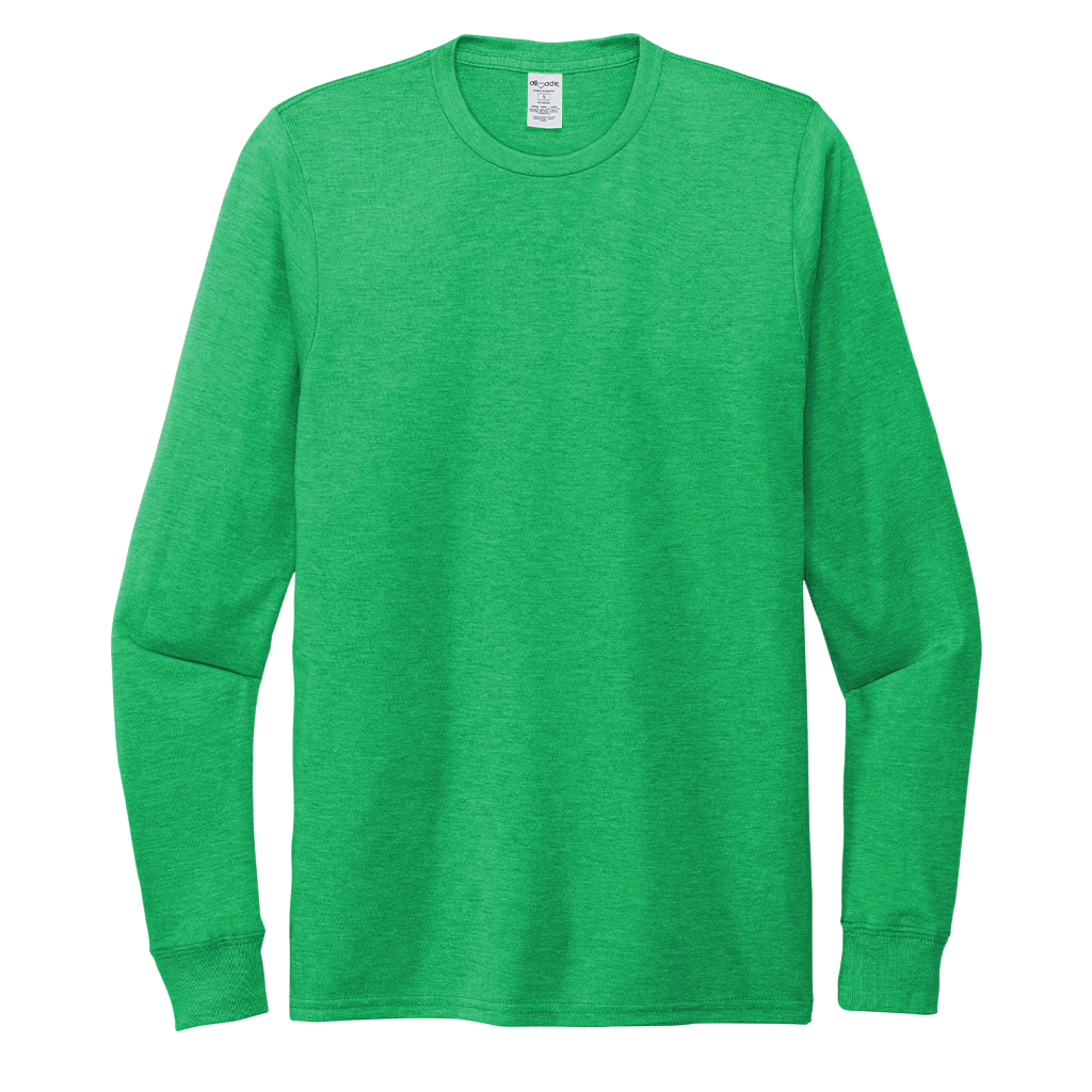 Screen print will pop on the Allmade Unisex Enviro Green Tri-Blend Long Sleeve Tee. This is a tee for all occasions with long sleeve design and made of recycled materials to create sustainable clothing. Made from the equivalent of up to 6 plastic water bottles, this recycled apparel is a must have for the eco-friendly individual. Add a custom logo to create employee apparel or an entire logoed apparel line. Perfect for layering when the weather is a bit chilly or wearing alone whether you are running errands or heading to the gym, this rib neck tee is a must have.