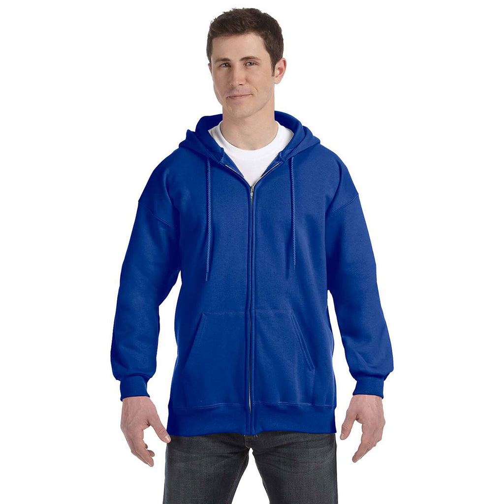 Custom embroidery and functionality come together in the Hanes Men's Deep Royal 9.7 oz. Ultimate Cotton 90/10 Full-Zip Hood. Perfect as an addition to employee apparel for those who need to be outdoors or in cold environments, this full-zip hoodie offers roomy front pockets and jersey lined two-ply hood for comfort and protection. Use these as giveaways at the next trade show or recruiting event with a custom logo to help people remember your company or team. This piece offers the simple comfort that everyone will love, making it a go to piece for everything from a trip to the gym to the morning commute. Place your order today.Highlights