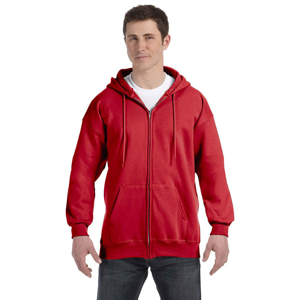 Custom embroidery and functionality come together in the Hanes Men's Deep Red 9.7 oz. Ultimate Cotton 90/10 Full-Zip Hood. Perfect as an addition to employee apparel for those who need to be outdoors or in cold environments, this full-zip hoodie offers roomy front pockets and jersey lined two-ply hood for comfort and protection. Use these as giveaways at the next trade show or recruiting event with a custom logo to help people remember your company or team. This piece offers the simple comfort that everyone will love, making it a go to piece for everything from a trip to the gym to the morning commute. Place your order today.Highlights