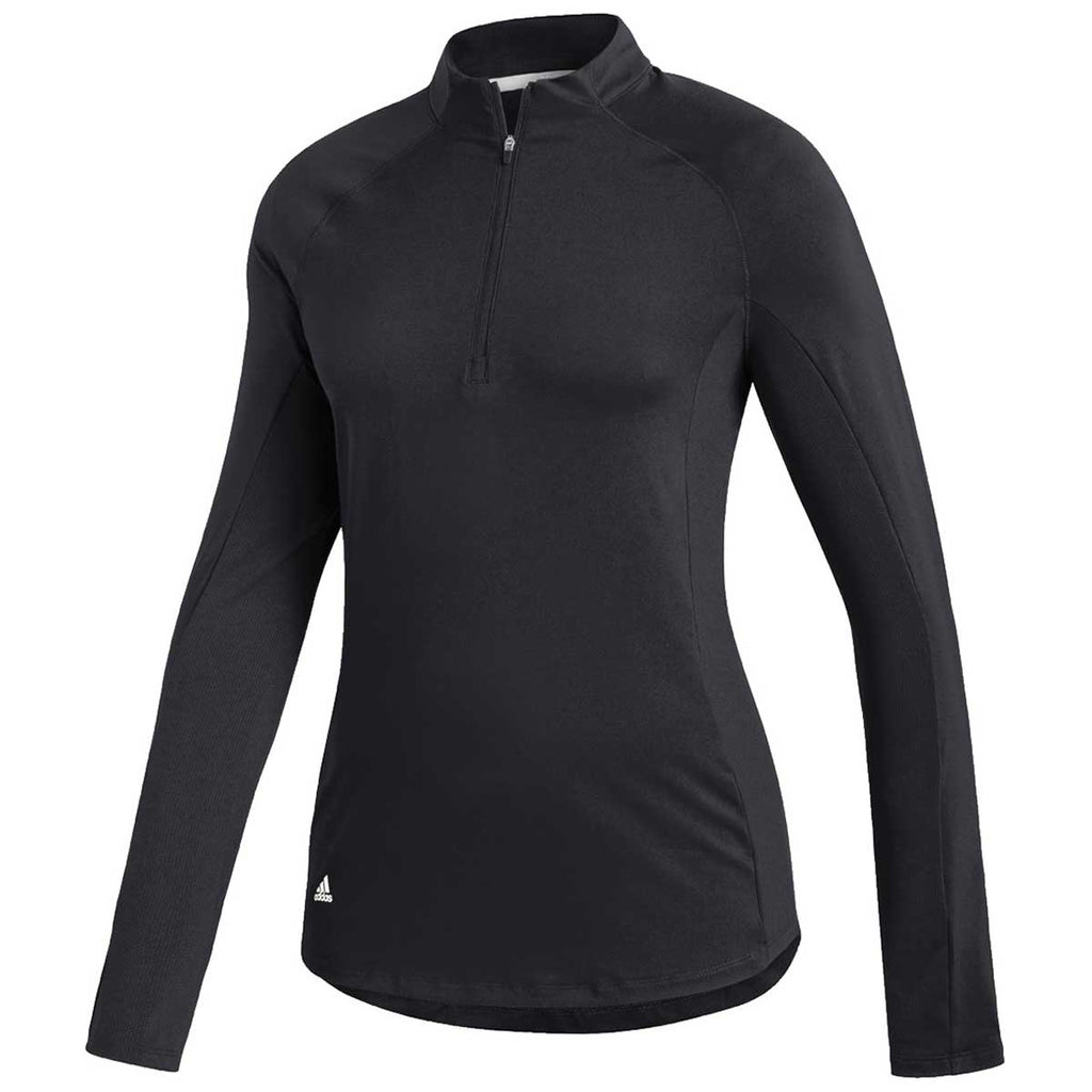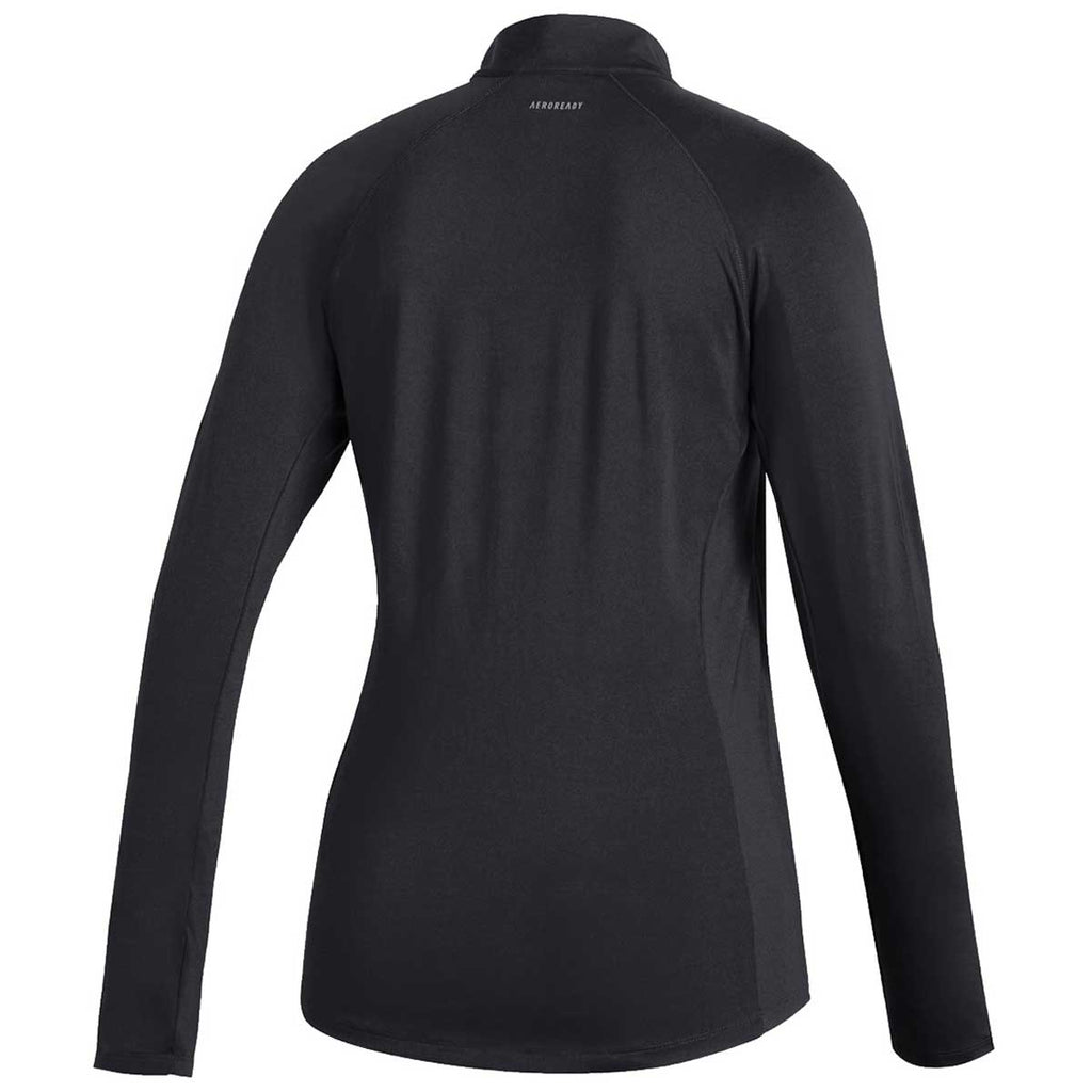 Choose your embroidery for the Adidas Women's Black Aeroready Printed Long Sleeve Polo for a custom look that will be both fun and functional. This sleek long sleeve polo is a must have for those who enjoy a round of golf after work or on the weekends, even if it is a bit cooler outside. The quarter zip front is made to be layered over a tank or fitted tee and will keep you comfortable, yet dry with moisture absorption properties. The mock zip collar has a feminine look that is perfect for the course with UPF 50+ sun blocking and a slight drop tail for extra coverage.