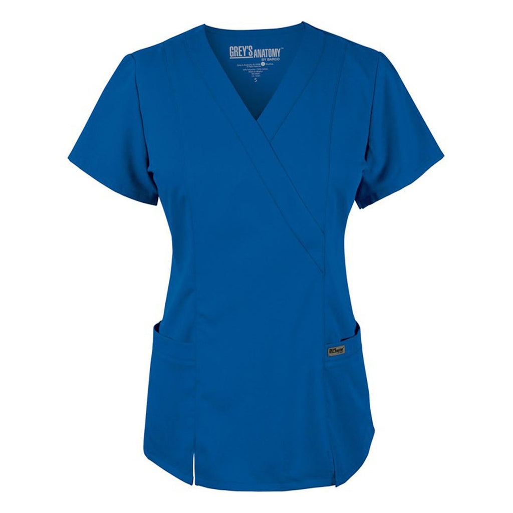 Grey's Anatomy Women's Royal Blue Princess Mock Wrap Top