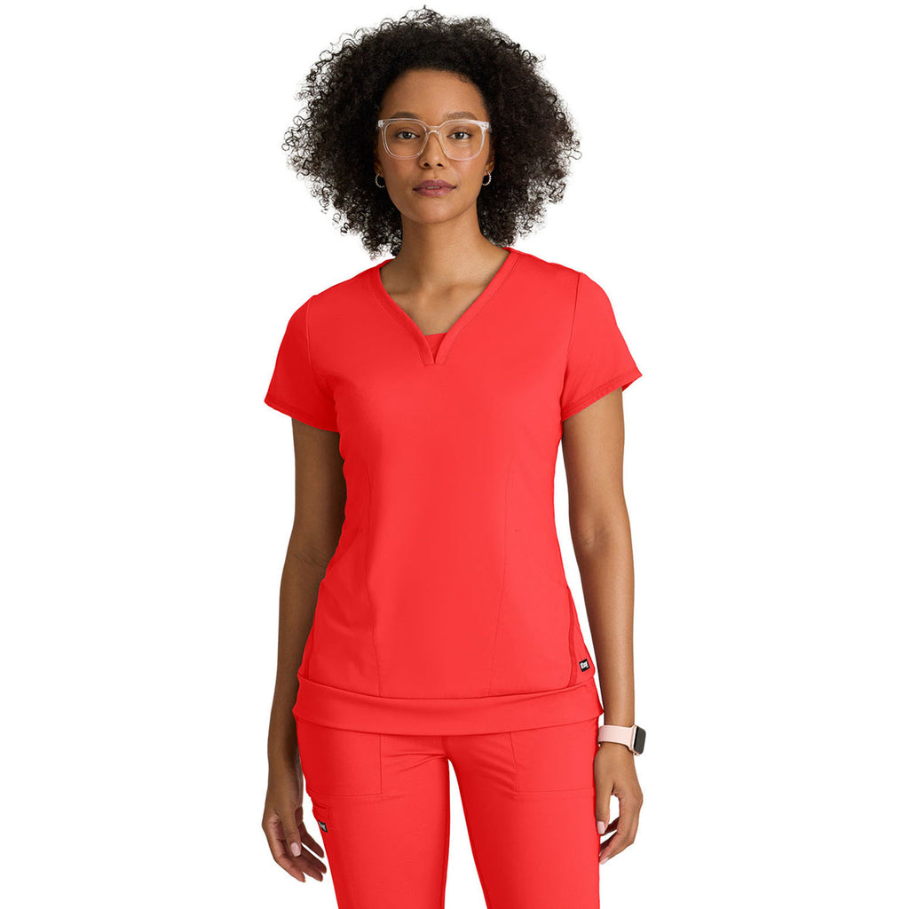 Grey's Anatomy Women's Radiant Coral Two Pocket V-Neck Motivate Top