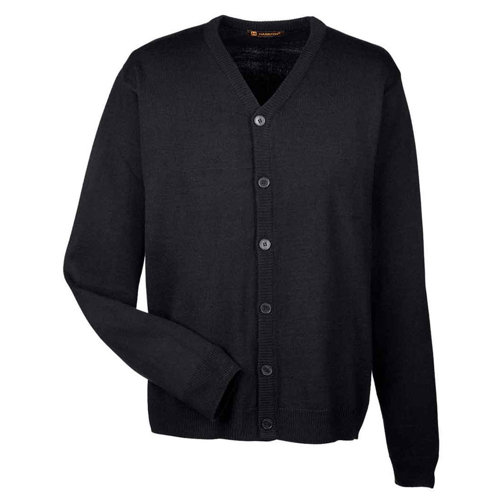 Harriton Men's Black Pilbloc V-Neck Button Cardigan Sweater