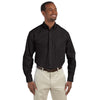 Thirty-five percent cotton poplin gives the Harriton Men's Black 3.1 oz. Essential Poplin its super soft feel. The remaining polyester ensures the stylish shirt resists rips and tears. Extra stitching at the seams and buttons bolster the strength of the long-sleeve shirt. Two-button adjustable cuffs complement the button down collar to create a versatile shirt to wear at the office and during visits to upscale restaurants. The left chest pocket offers convenient storage for a Smartphone. Attach your corporate label to spread the word about your business. Corporate logoed apparel makes ideal gifts for your employees.Corresponding Women's Style: Harriton Women's Black 3.1 oz. Essential Poplin