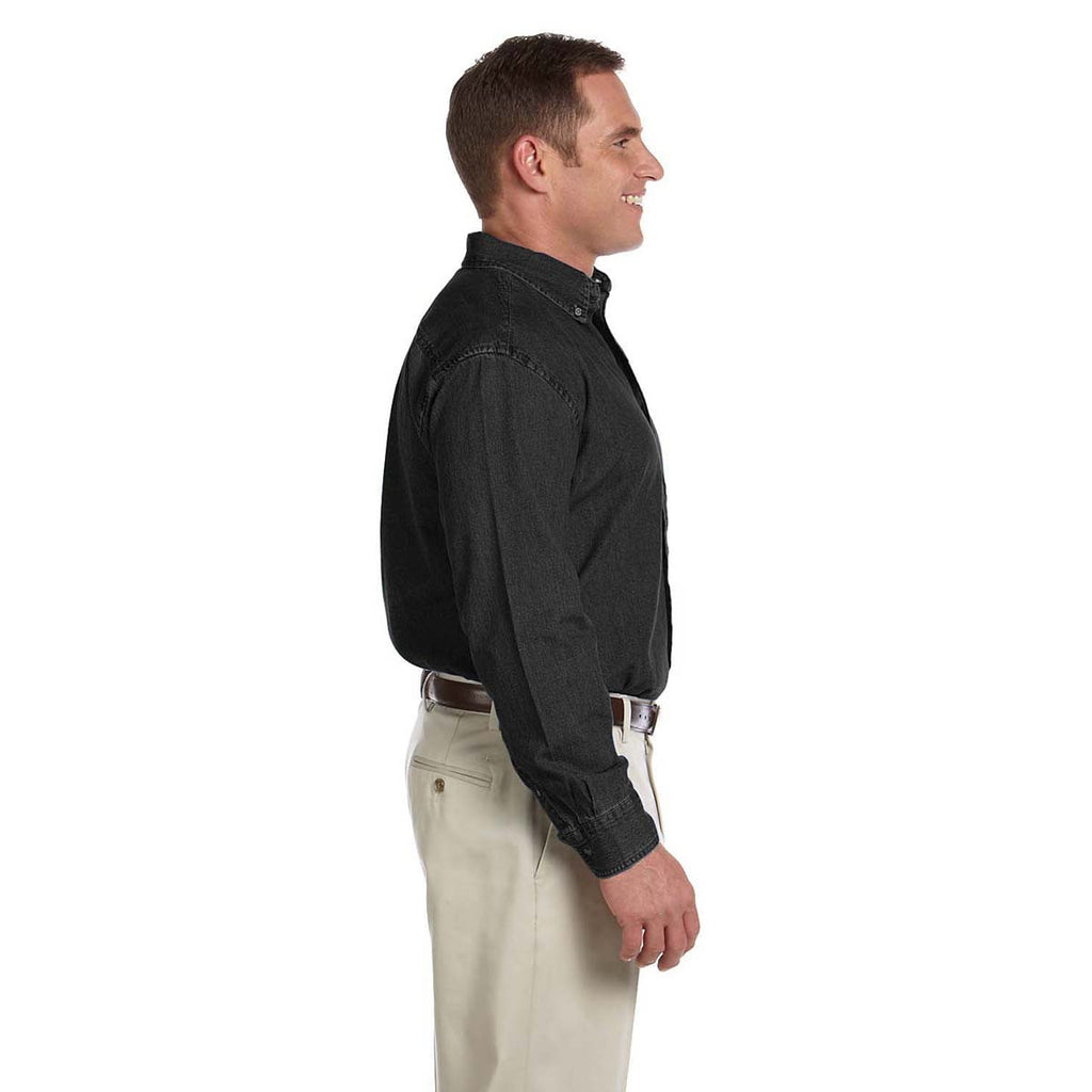 Give the tall members of your work team the high-performance Harriton Men's Washed Black Tall 6.5 oz. Long-Sleeve Denim Shirt. The stylish shirt covers all of your fashion bases, from wearing it to a corporate meeting to putting it on to stay warm during a camping trip. The 100% cotton denim shirt never fades to ensure you look great wearing the shirt for years to come. Flat-felled seams add a touch of elegance and the fully constructed front placket enhances the visual appeal of the multi-purpose shirt. Signature horn-styled buttons and contrast thread complete the fashion features. Add your company logo to leave an indelible impression on customer prospects at civic events.Highlights