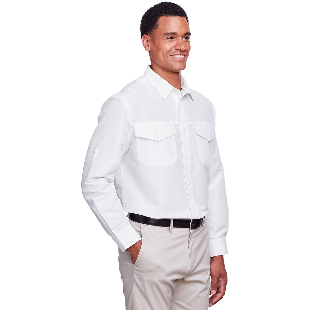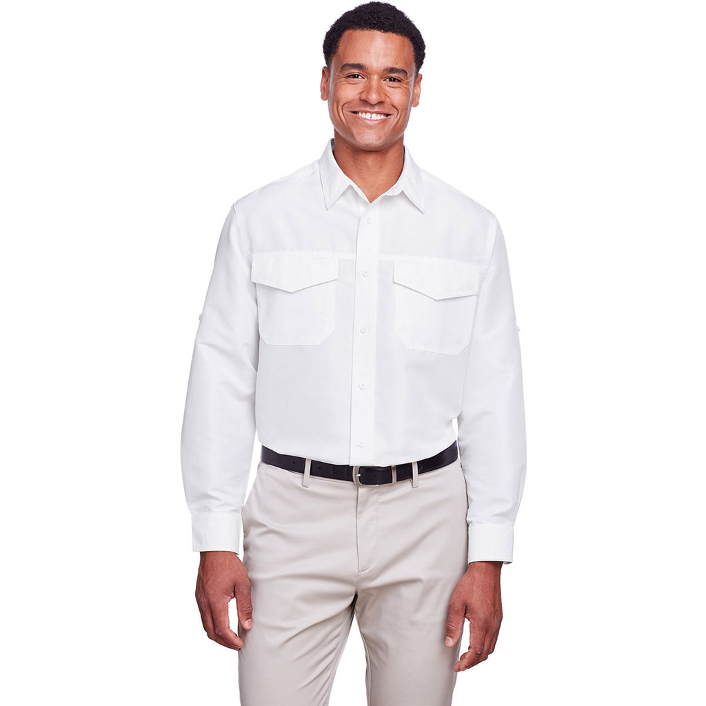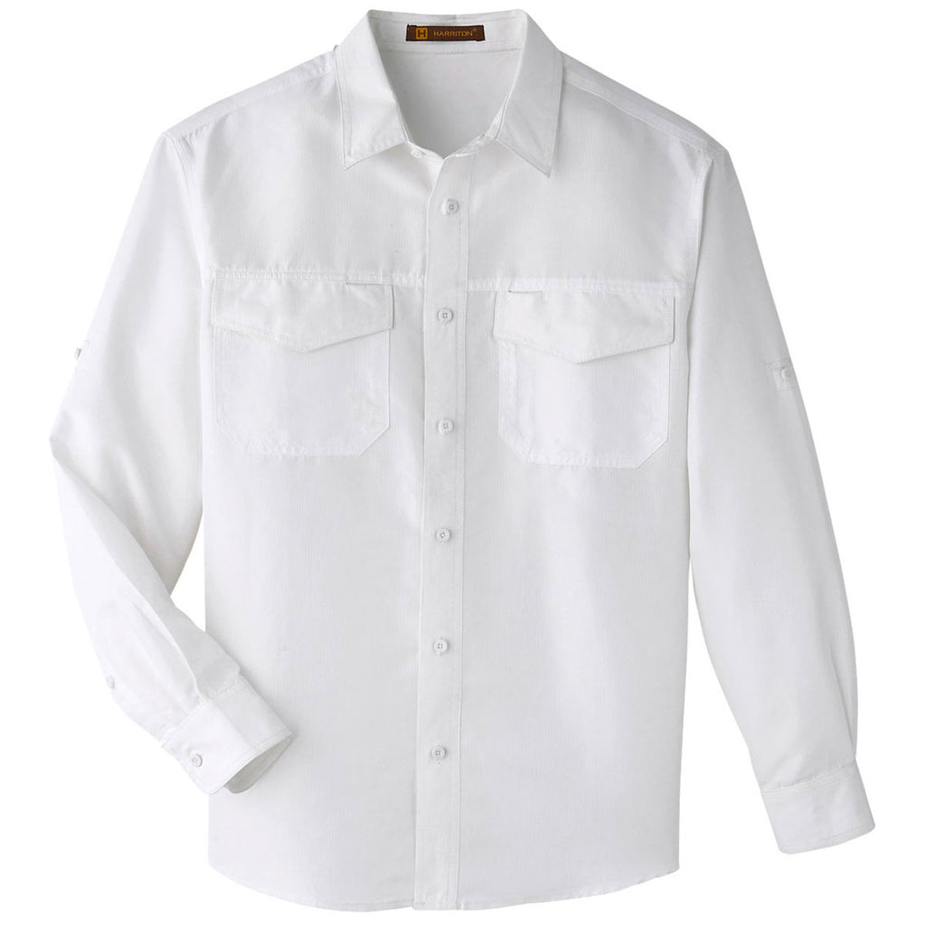 Harriton Men's White Key West Long-Sleeve Performance Staff Shirt