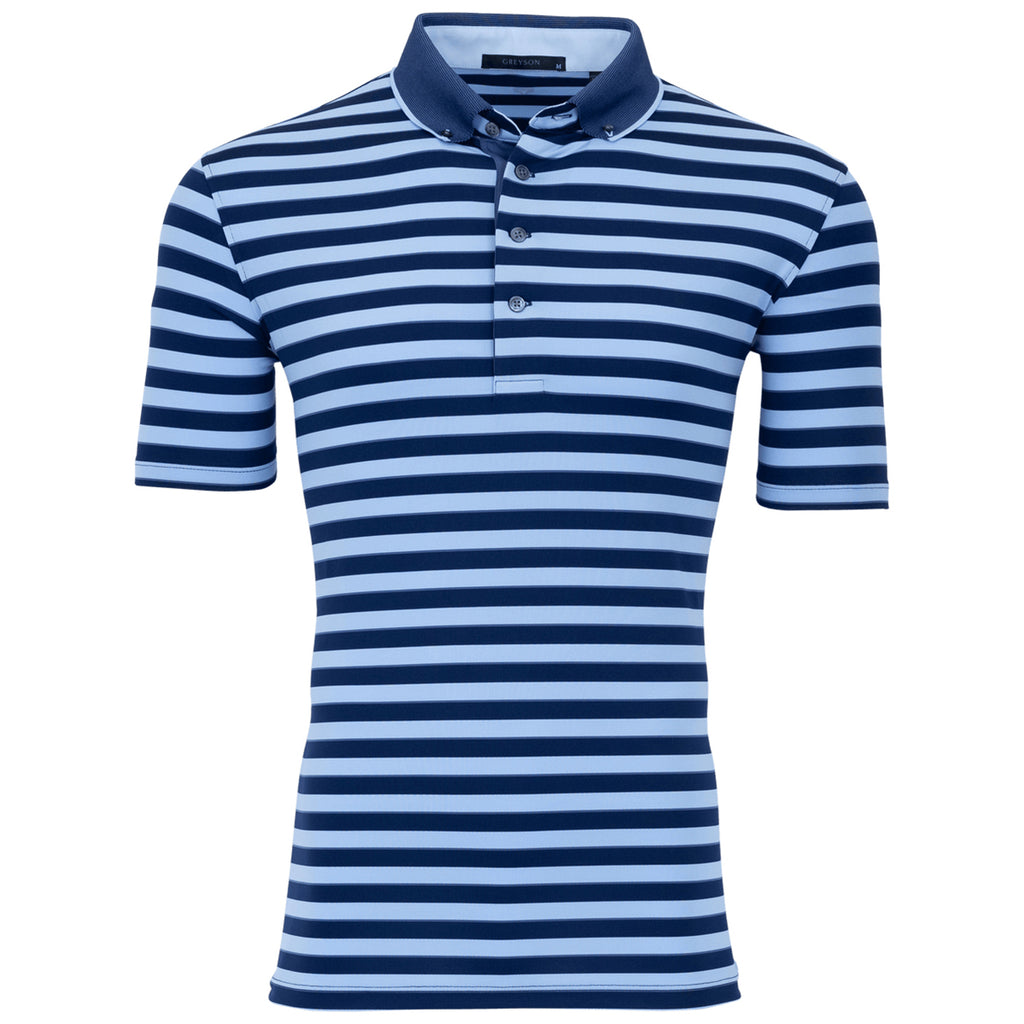 Get noticed in a custom Greyson Men’s Maltese Blue/Delphinium/Falcon Wolastoq Polo. This modern striped pattern polo works effortlessly on the back nine, the driving range, the clubhouse, and beyond. The moisture-wicking and antimicrobial technology ensures you stay cool, dry, and comfortable every time you wear it—order as a gift or to outfit your team.