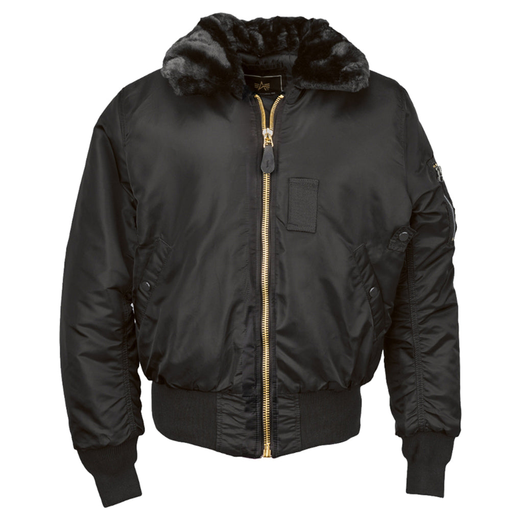 What creates a cooler look than a flight jacket? Nothing of course, which makes the Alpha Industries Men's Black B-15 Flight Jacket the perfect choice whether you are searching for employee gifts, employee apparel, or a form of fashion apparel for yourself. The flight nylon B-15 offers a removable faux mouton collar, button tabs, and a nylon shell that will help you brave the harsh elements. Add your company logo to the water resistant jacket for additional recognition. Complete with plenty of pockets, knit rib cuffs and waistband, this flight jacket will carry your custom embroidery in a way that gets you and your company noticed. Place an order today.Highlights