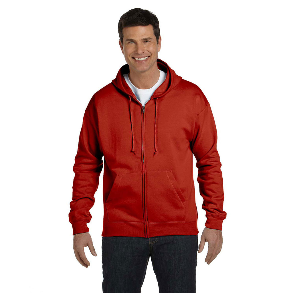 Your custom logo will look great on this Hanes Men's Deep Red 7.8 oz. EcoSmart 50/50 Full-Zip Hood that is both functional and fashionable in a comfortable way. Your embroidery will stand out against one of the ten available color choices made of a 50/50 cotton/polyester blend. The lightweight full-zip with pockets is great for trade shows when you need to carry small items such as cards or prizes in your pockets or as part of employee apparel for those who need to be outdoors on cooler days. Create a custom logo that best illustrates your company or organization and place your order today.Highlights