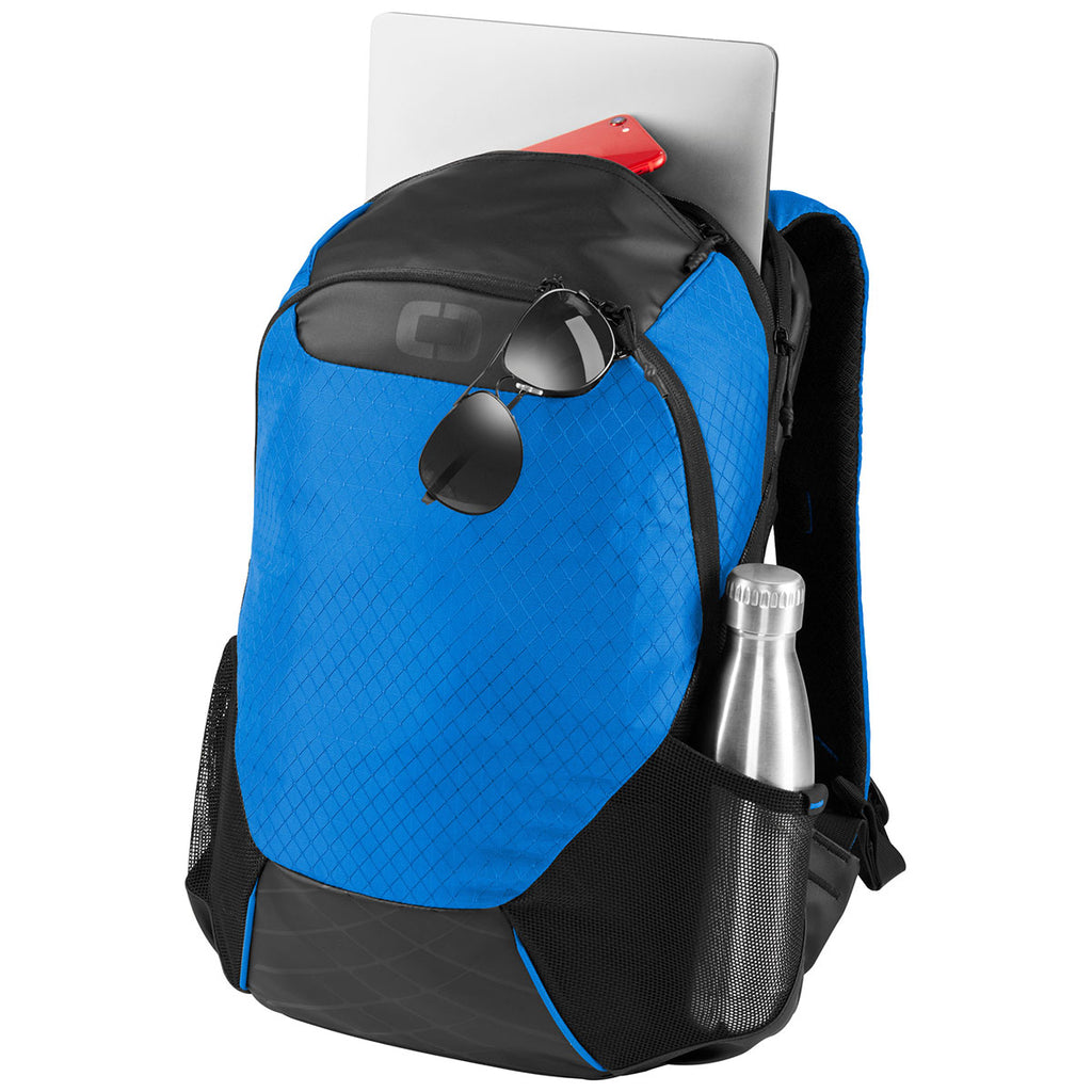 Streamlined for optimal organization, the embroidered OGIO Cobalt Blue Basis Pack represents the ideal gift to hand out at corporate recruiting events. Attach a custom logo on the pack to send job candidates out into the field to promote your products and services. The ergonomically friendly back panel comes with fine mesh to deliver maximum breathability. Place your laptop or tablet inside the padded main compartment to prevent impact damage. Dual side beverage pockets help you stay hydrated during prolonged business flights. Add a custom logo to push your brand to the front of the competition line.