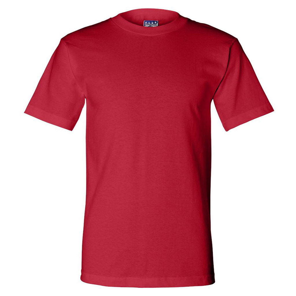 The Bayside Men's Red Union-Made Short Sleeve T-Shirt and your company's custom logo would be a good fit. If you're looking for company uniforms that are on the casual side or require comfort for workers with physical jobs, a logoed batch of these shirts is the way to go. No matter what your custom logo looks like, there's a color that will serve as the perfect background. These T-Shirts also would be functional at trade shows where you want your company's representatives to dress down a little, and they'd be great to hand out as promotional items at recruiting events.Highlights