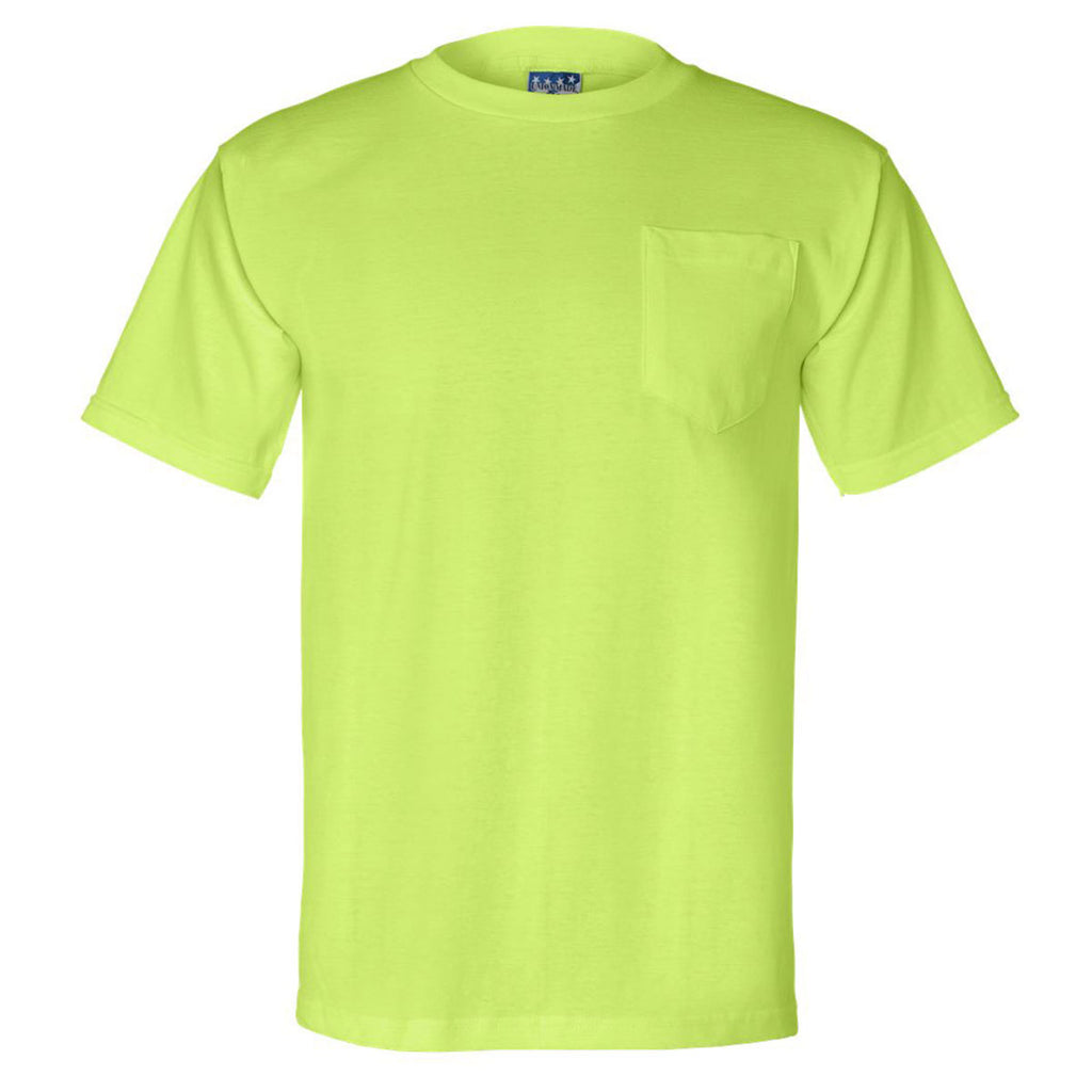 The Bayside Men's Lime Green Union-Made Short Sleeve T-Shirt with Pocket is a great place to put your company's custom logo. Service or delivery workers in the field would look sharp wearing this shirt as part of their company uniform. The left chest pocket could help draw the eye to your logo on the right side. If your company participates in corporate sports leagues, these solid-colored, logoed shirts would make an ideal uniform with room for names and numbers on the back. You also could order a batch to hand out as employee gifts or incentive-program rewards.Highlights