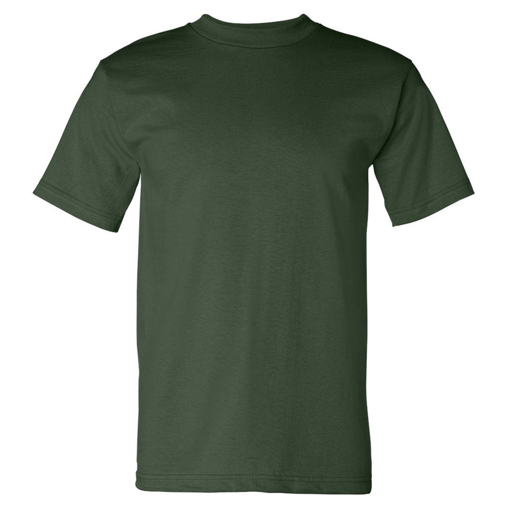 The Bayside Men's Forest Green USA-Made Short Sleeve T-Shirt is more than just a T-Shirt, especially with your company's custom logo right there on the chest. The wide collar as well as the double-needle stitched sleeves and bottom hem put this shirt a cut above the everyday T-Shirt when it comes to fashion, and it would be a sharp company uniform. Available in a wide range of colors, your logo would blend in well regardless of its design. Or you could order different colors to give your employees a full uniform wardrobe. This logoed shirt also would be practical for company events such as trade shows.Highlights