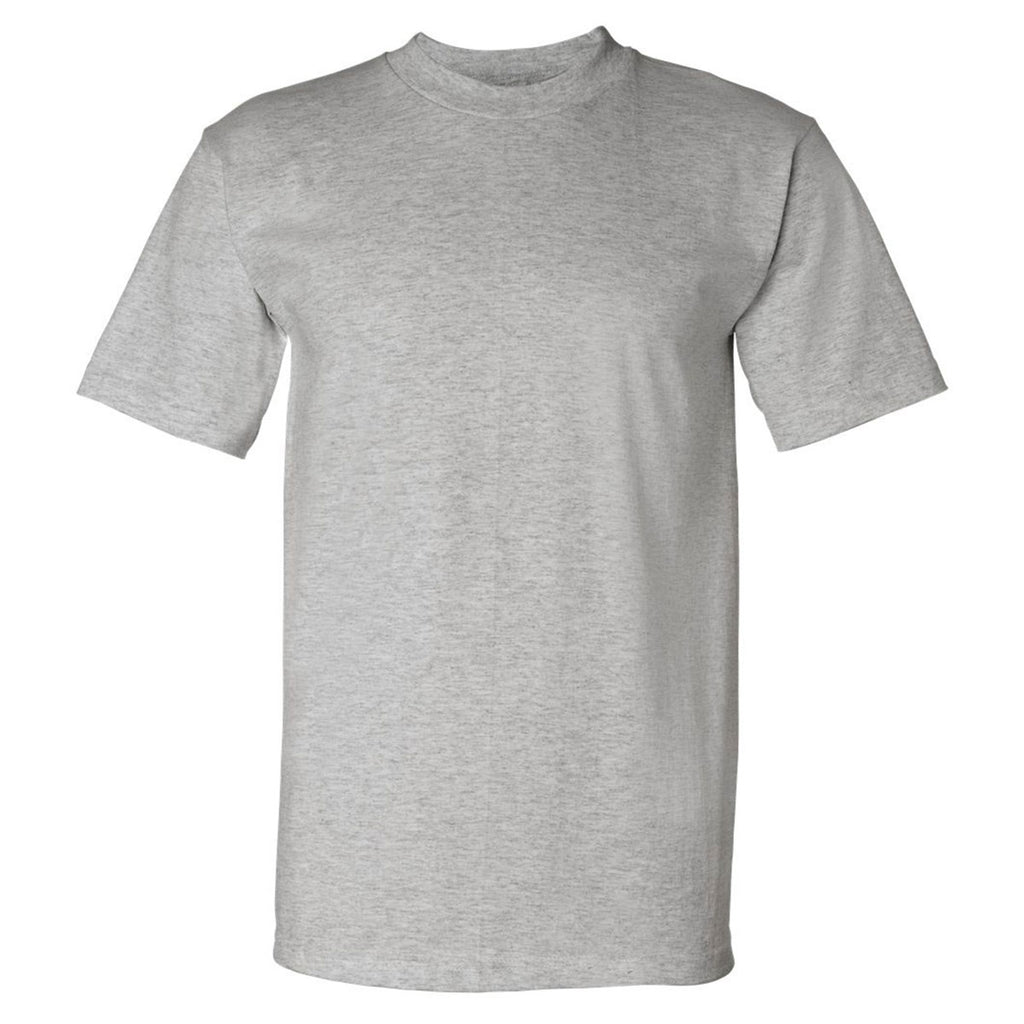 The Bayside Men's Dark Ash USA-Made Short Sleeve T-Shirt is more than just a T-Shirt, especially with your company's custom logo right there on the chest. The wide collar as well as the double-needle stitched sleeves and bottom hem put this shirt a cut above the everyday T-Shirt when it comes to fashion, and it would be a sharp company uniform. Available in a wide range of colors, your logo would blend in well regardless of its design. Or you could order different colors to give your employees a full uniform wardrobe. This logoed shirt also would be practical for company events such as trade shows.Highlights