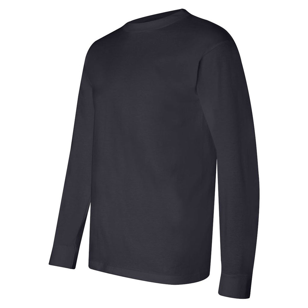 The Bayside Men's Navy USA-Made Long Sleeve T-Shirt, with your company's custom logo, would look great on your employees whether they're at work or at play. This 100% cotton T-Shirt is available in a wide assortment of colors, so your logo would blend in no matter its color or design. You could order a batch of these long-sleeve shirts as company uniforms for your service or delivery workers out in the field. Or they'd work well as uniforms if your company takes part in corporate sports leagues. These shirts are also suitable for company events such as trade shows.Highlights