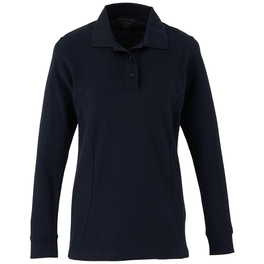 Elevate Women's Navy Palo Long Sleeve 100% Cotton Pique Polo