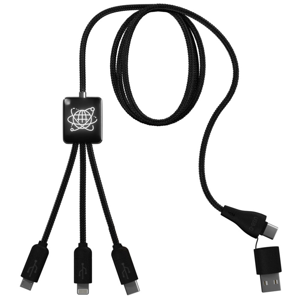 SCX Black Design Data Transfer Eco Cable with logo is an all around cable for charging or data transfer. The three plugs make this compatible with Apple, Micro-USB, and USB Type-C devices. Your illuminated logo will stand out with each use. Great to give to office staff who work online or need to download files quickly. Order today.The minimum order for this product is 25 pieces.