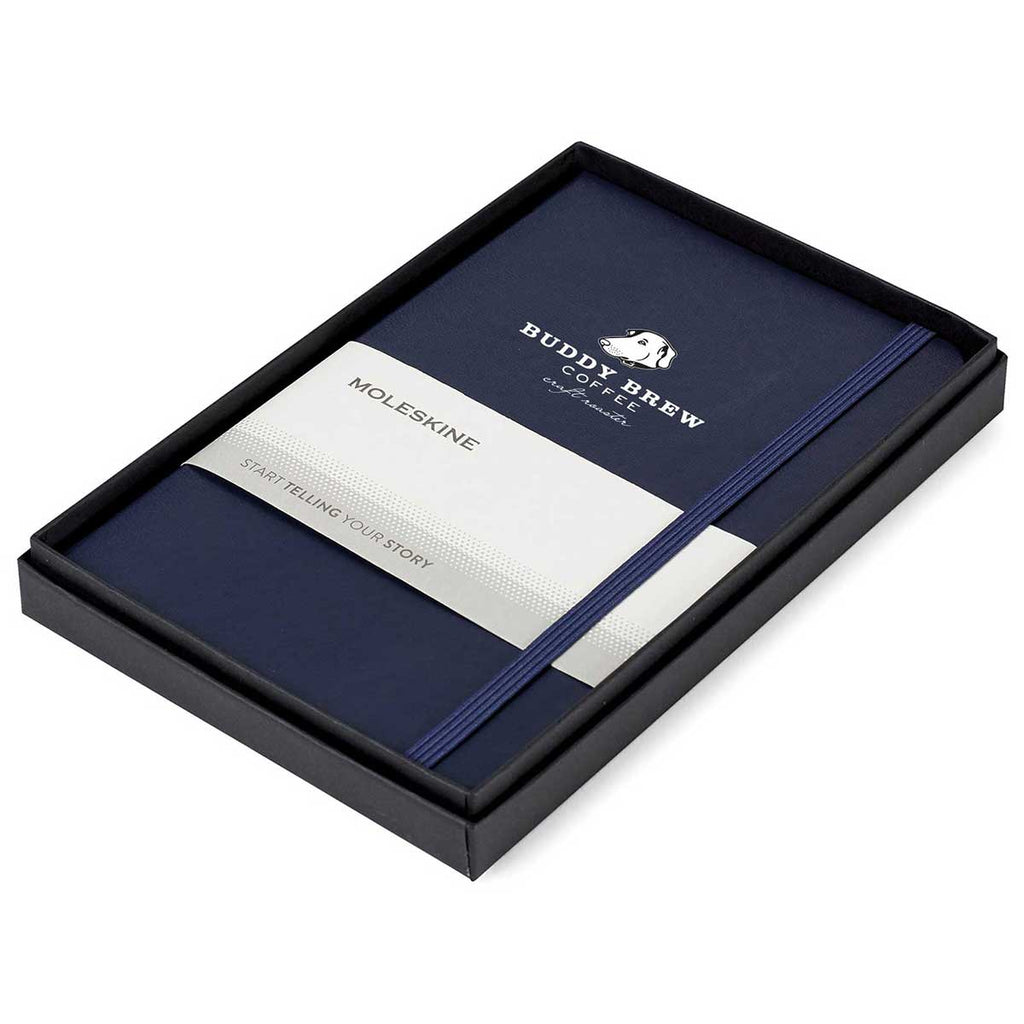 Need custom logoed event giveaways? Fashion these Moleskine Navy Blue Medium Notebook Gift Sets to the image of your business or company - our neat printing option lets you add a custom logo or name so you can advertise your brand as well. Moleskine notebooks are one of the best employee gifts - as each notebook is designed to tough out years way better than a regular notebook.