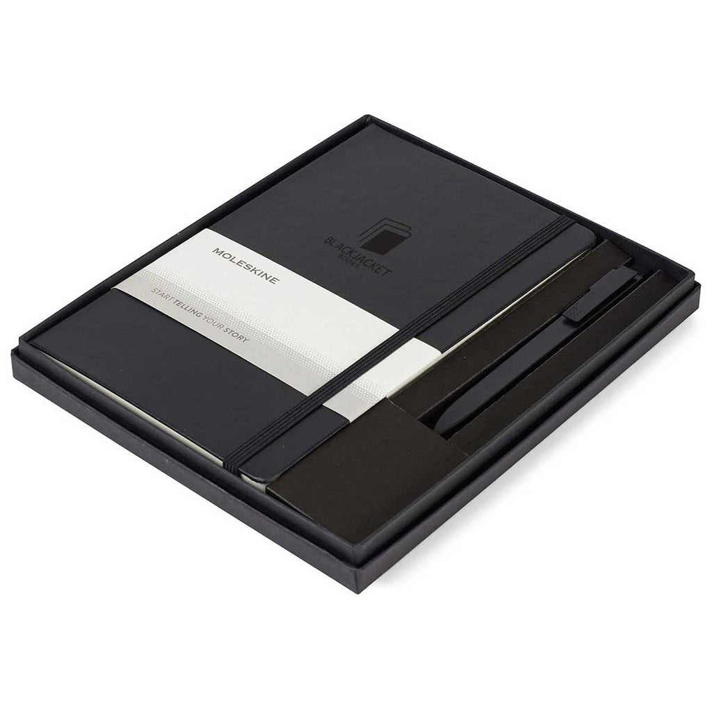 - This gift set includes one Hard Cover Ruled Large Notebook and one GO Pen packaged in a two-piece Moleskine gift box