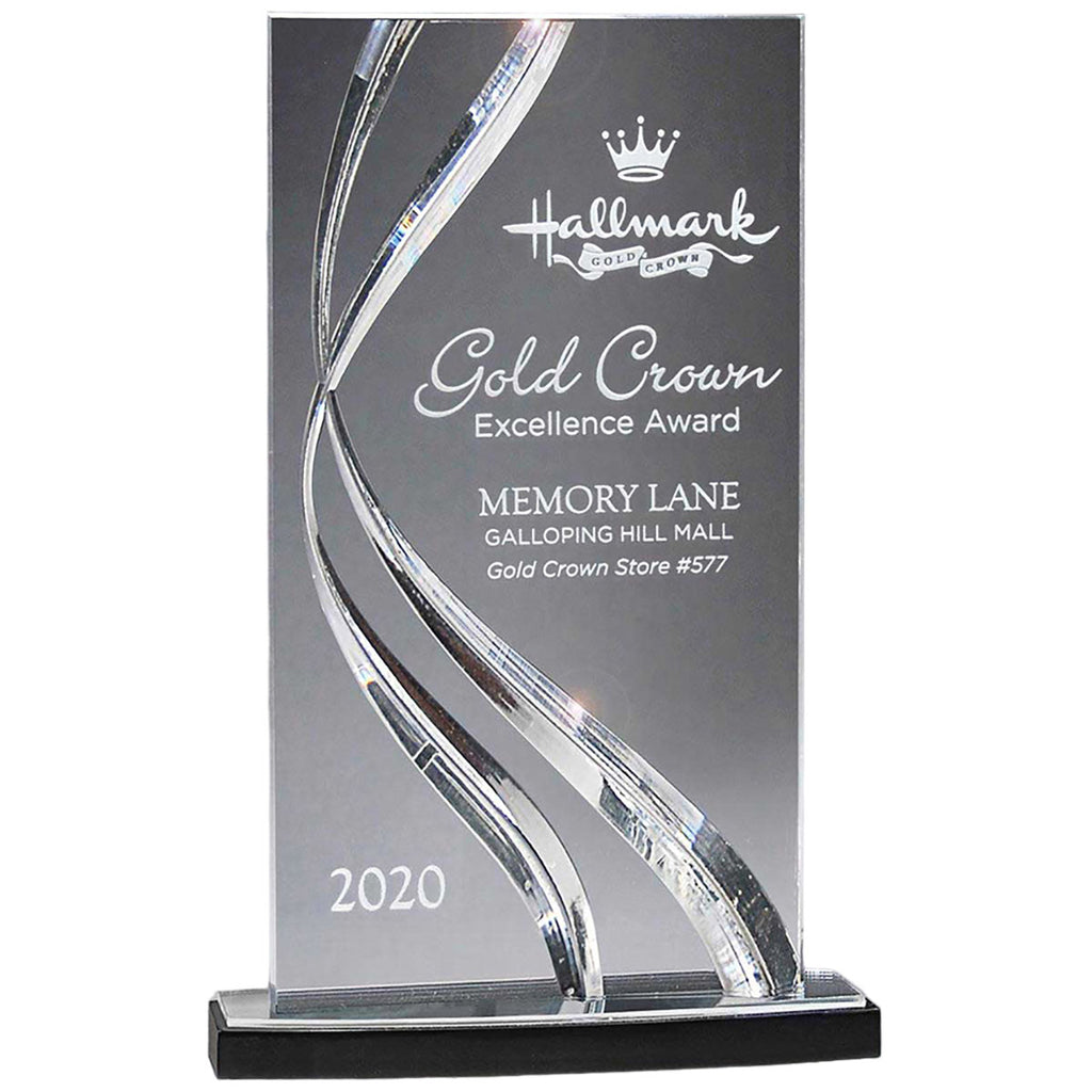 The Hit Clear Large Clear Award with a custom design is a beautiful way to show pride and acknowledgment and recognize the most deserving. The lucite acrylic design with a sweeping ribbon engraving sits beautifully on a desk or shelf for the receiver. Perfect for work, organizations, schools, and more.