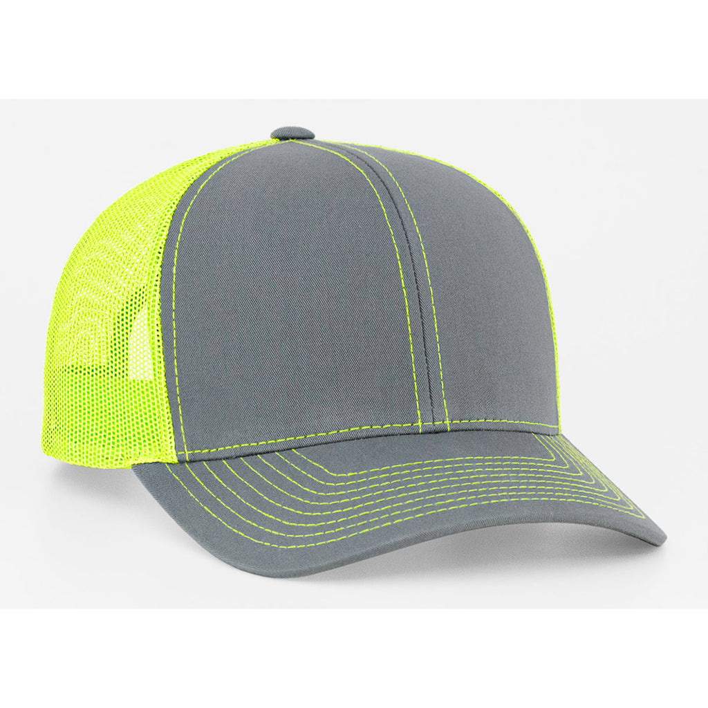Turn the logoed Pacific Headwear Graphite/Neon Yellow Snapback Trucker Mesh Cap into a corporate gift the loyal customers of your business will never forget. The lightweight, pro model shaped mesh cap contains cotton and polyester blended front panels that withstand the rigors of athletic competitions. Wear the versatile cap outdoors performing home improvement projects. The trucker mesh back encourages the flow of air to cool your head on the warmest days of the year. Add a custom logo to the large imprint area located on the front of the cap to expand the presence of your company in the community.Highlights