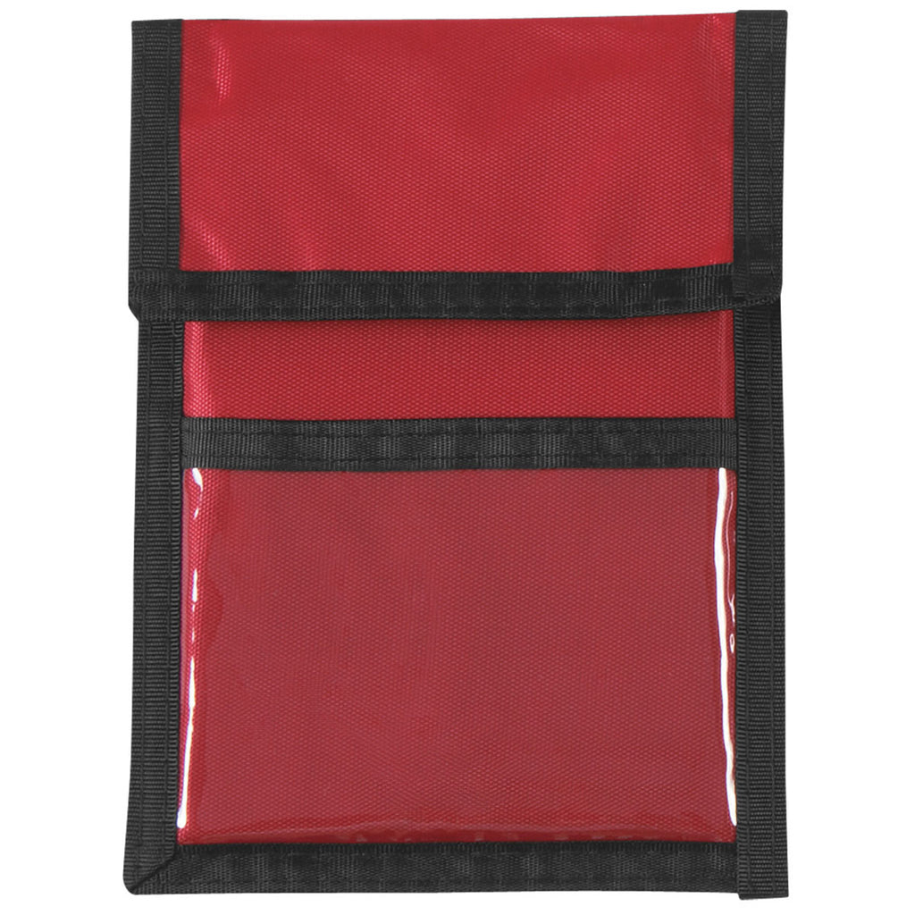 Design a corporate logo for the Hit Red Nylon Neck Wallet Badge Holder to keep your ID and other small items safe and secure. These easy-to-wear holders are ideal for conferences or special organizational events when carrying a wallet or purse is inconvenient. Place your badge in the see-thru pouch and your cards or money in the other sections.