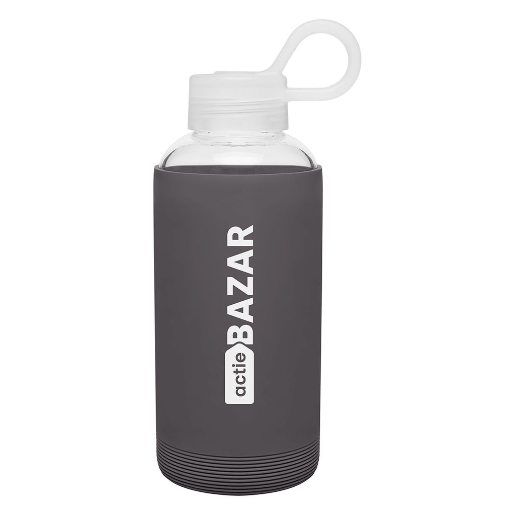 Want the healthy reassurance of a glass bottle with some additional protection? Then this H2Go Graphite Karma Glass Bottle 16oz is perfect for your mobile beverage containment. It includes a silicon sleeve that protects the glass from nicks during the rigors of daily life, while the carrying loop provides an added dimension of fun and convenience. Put it all together and you have one stellar way to keep your beverage handy. But don't forget to add your unique logo with Merchology if you want to fashion this bottle into a gift for clients, customers, employees, and more-or if you simply want it to keep for the team around the office.