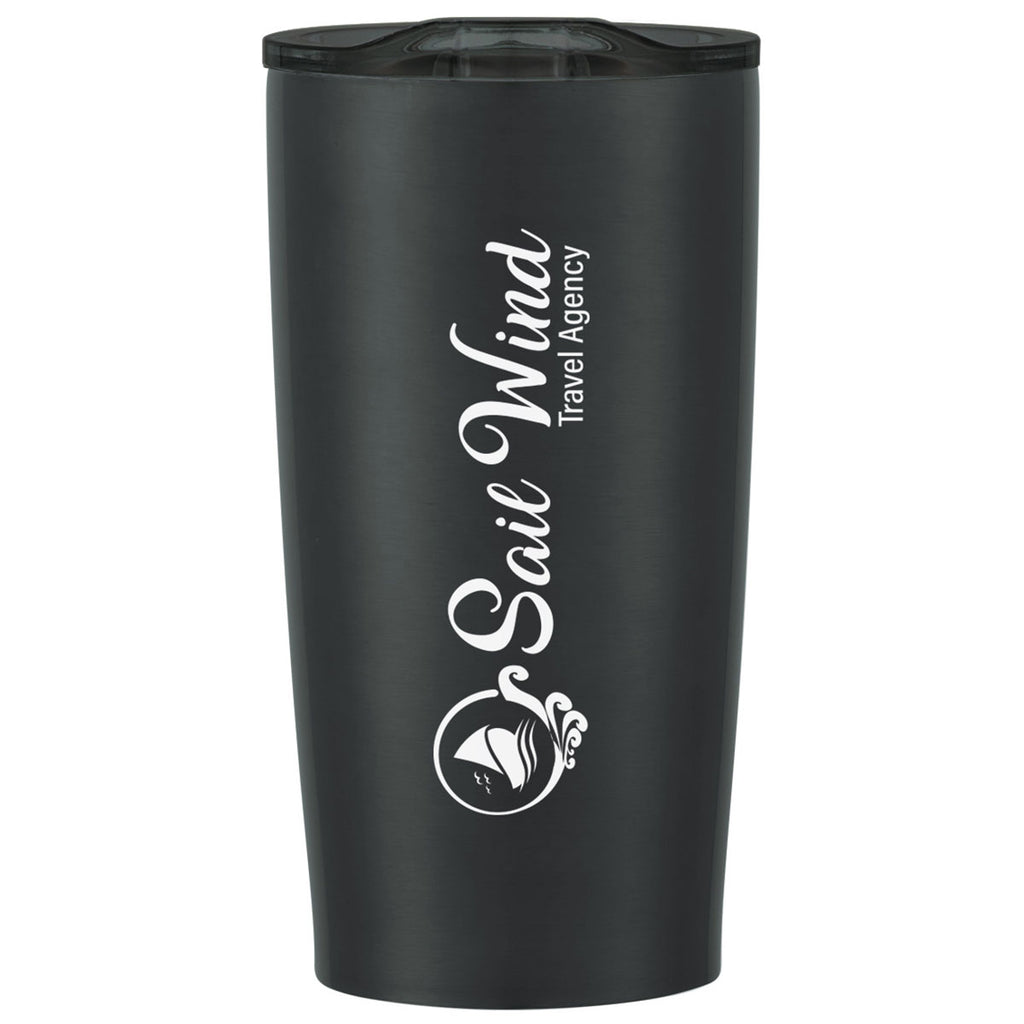 Hit Matte Black with Charcoal Lid 20 Oz. Himalayan Tumbler with a custom logo makes your morning commute and afternoon drink a bit easier to enjoy. The stainless steel tumbler has double wall construction and keeps drinks hot or cool for up to 6 hours as needed. Choose the color you prefer to create a personalized item for your company or event.