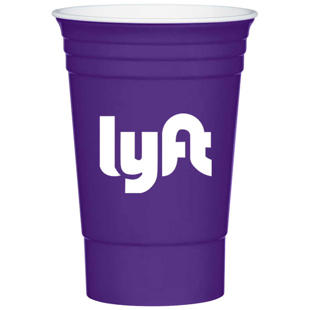 Hit Purple/White The Cup with a custom logo will keep your party going. This silkscreen custom cup is perfect for big events like receptions, family reunions, or tailgating, so everyone knows the host or sponsor. The large 16-ounce size is sturdy, reusable, and available in various color options. Serve your signature drink, or let people choose their own to keep the fun going.