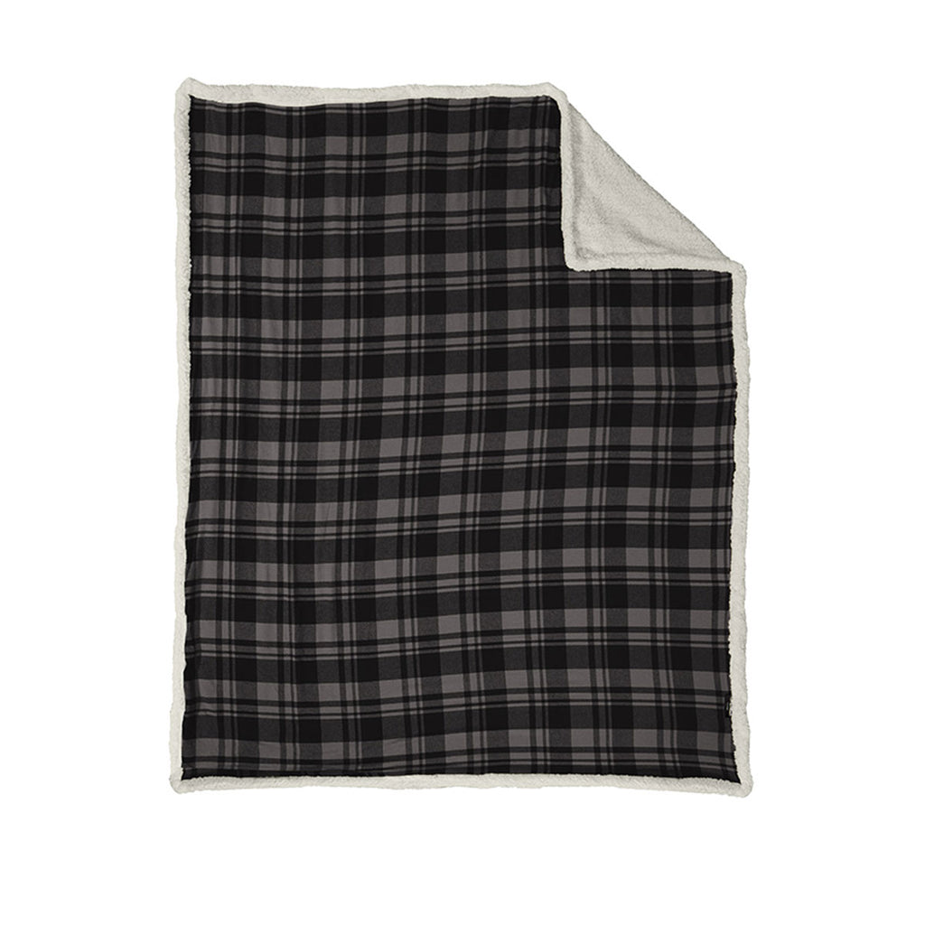 Port Authority Black Uneven Plaid Flannel Sherpa Blanket