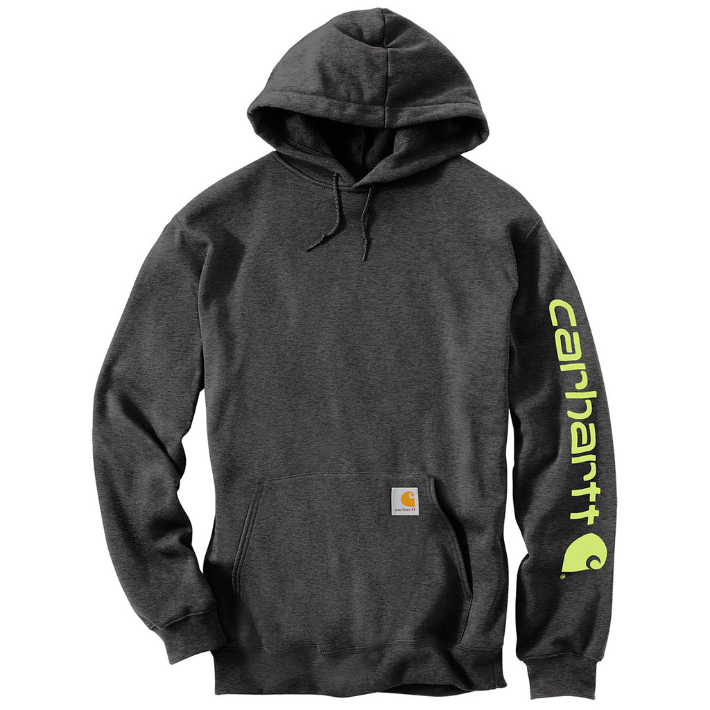 Carhartt Men's Carbon Heather Midweight Hooded Logo Sweatshirt with a custom logo is the ultimate in athleisurewear. The layerable sweatshirt with front kangaroo pocket features the Carhartt logo along the left sleeve and is stretchable, triple-stitched, and loose-fitting. Great for working outdoors, working out, or lounging at home. Order today.This product can only ship within the United States and Canada.