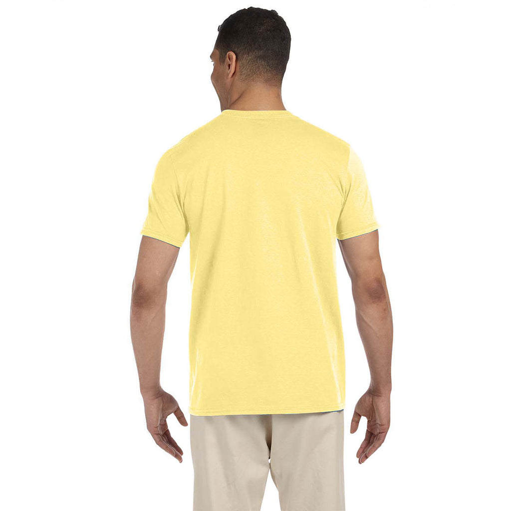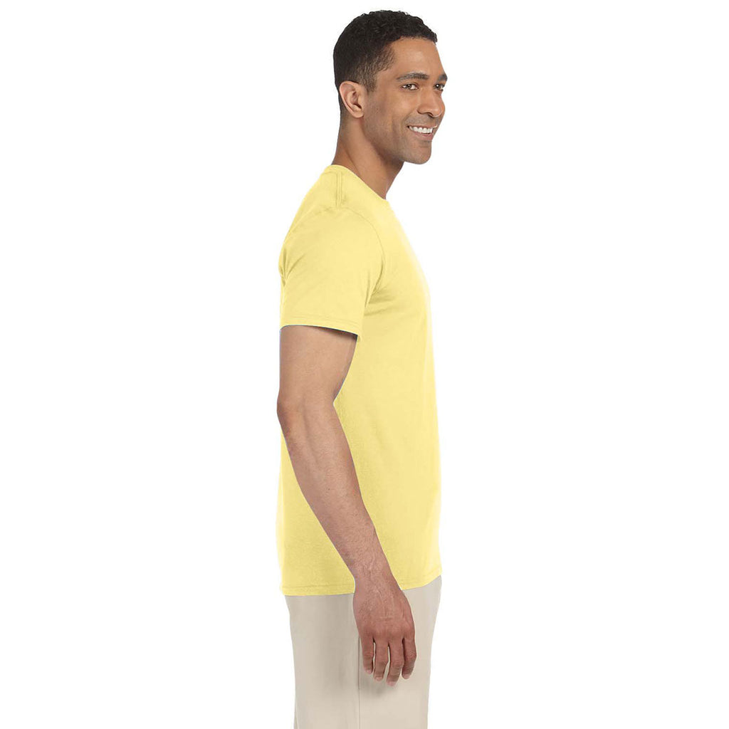 Generate a little employee swag by ordering the screen printed Gildan Men's Cornsilk Softstyle 4.5 oz. T-Shirt. Double needle stitching at the sleeves and bottom hem resist the types of rips and tears that eventually unravel inferior designed company shirts. Enjoy the super soft comfort of 100% preshrunk cotton underneath a dress shirt or as the lone layer for outdoor corporate events. Print a custom logo on the t-shirt to boost the image of your company at industry trade shows. The taped neck and shoulder combined the fashion elements of style and long lasting durability.Corresponding Women's Style: Gildan Women's Cornsilk Softstyle 4.5 oz. Fitted T-Shirt