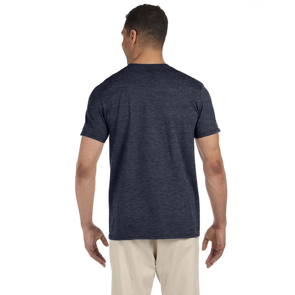 Generate a little employee swag by ordering the screen printed Gildan Men's Heather Navy Softstyle 4.5 oz. T-Shirt. Double needle stitching at the sleeves and bottom hem resist the types of rips and tears that eventually unravel inferior designed company shirts. Enjoy the super soft comfort of 100% preshrunk cotton underneath a dress shirt or as the lone layer for outdoor corporate events. Print a custom logo on the t-shirt to boost the image of your company at industry trade shows. The taped neck and shoulder combined the fashion elements of style and long lasting durability.Highlights