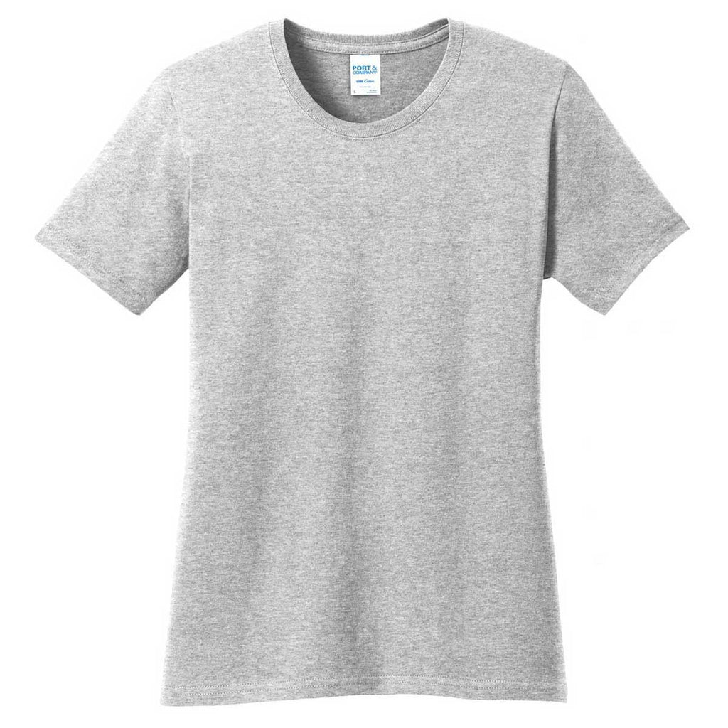 Decked out in a solid hue and flaunting a flattering fitted silhouette, this ultra-soft crewneck t-shirt adds a comfortable layer to your favorite ensembles. Crafted from lightweight, breathable 100% cotton. Available at a wallet-friendly price, this summer staple tee is a perfect solution to bulk corporate giveaways by customizing it with your company logo and/or message on it. Using a personalized version of this Port & Company Women's Ash Core Cotton Tee as uniform will develop a sense of brand consistency and credibility.Corresponding Men's Style: Port & Company Men's Ash Core Cotton Tee
