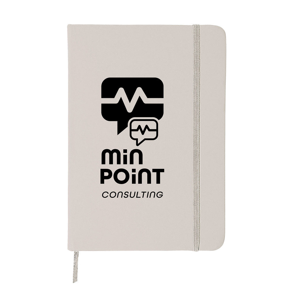 Your company's custom logo will make a statement when it's added to the front of this Primeline White Comfort Touch Bound Journal - 5" x 7". Available in a vibrant array of color options, this customizable notebook includes 80 lined sheets of paper as well as a ribbon bookmark to keep your place.The minimum order for this product is 100 pieces.