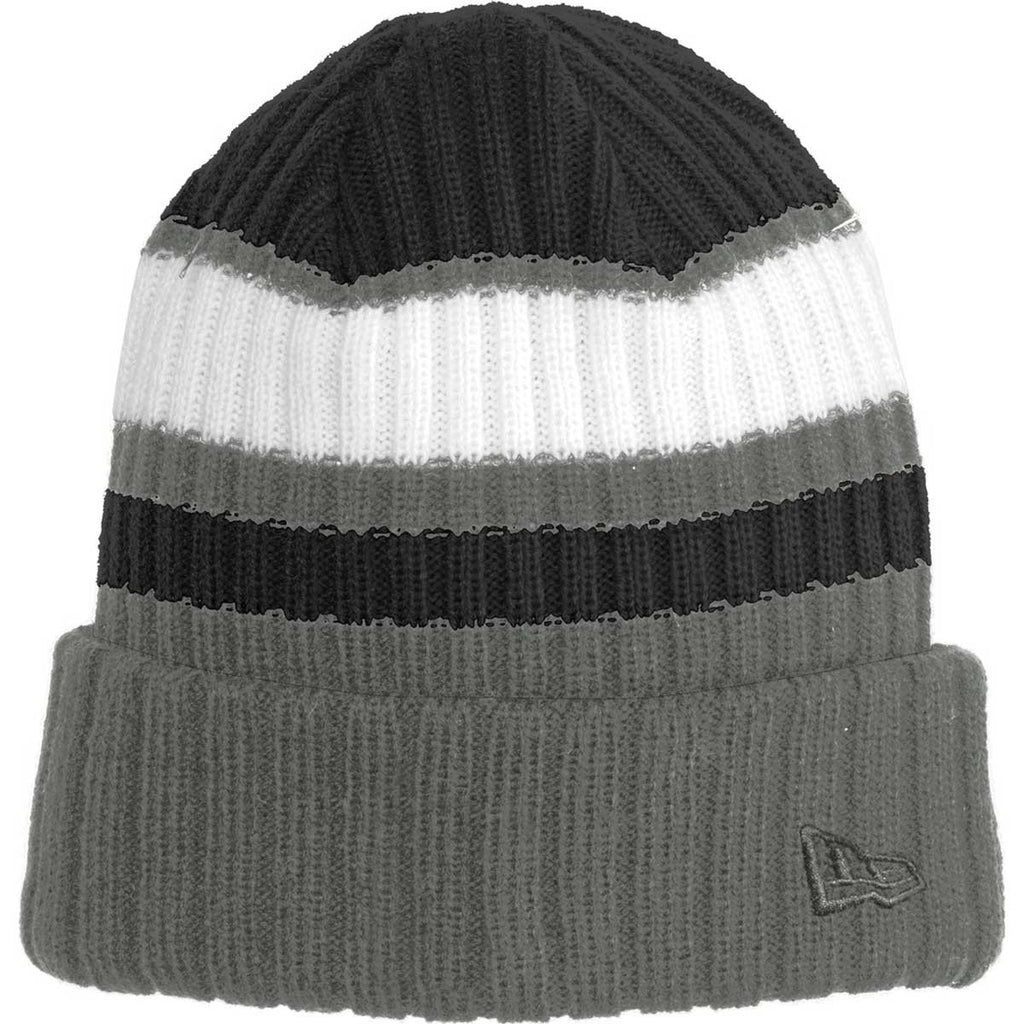 With multi-stripes, the New Era Knit Black/Graphite Ribbed Tailgate Beanie keeps you warm before baseball and football games. The stylish design stands out in a crowded field of mundane winter hats. With attention focused on your new tailgate beanie, why not take advantage of the interest by adding your company logo to the large area on the back of the beanie. Designed with 100% acrylic yarn, the beanie stretches to comfortably pull over your head. The highly breathable beanie makes the ultimate corporate gift to reward loyal customers for their business.