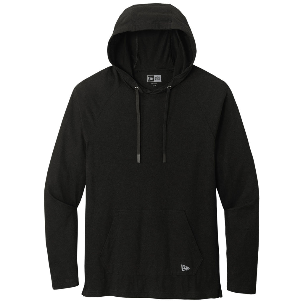 Choose a custom logo for the New Era Men's Black Solid Tri-Blend Hoodie for a comfortable look that can serve many purposes. Your screen print will stand out on the lightweight, soft hoodie that is exceptional for layering. Complete with modern design and moisture wicking performance this hoodie can serve as employee apparel with a company logo or something for a team with a custom logo. Great for working out, warming up, or simple comfort wear, this hoodie with pouch pocket would be a welcome addition to nearly every wardrobe.