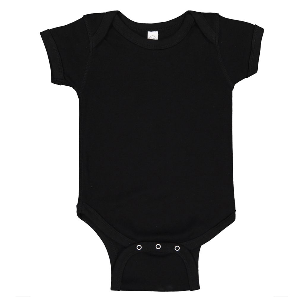 Add a custom logo to the Rabbit Skins Black Infant Baby Rib Onesie. A great gift idea for employees or tradeshow. An adorably comfortable one sie made with 100% cotton.