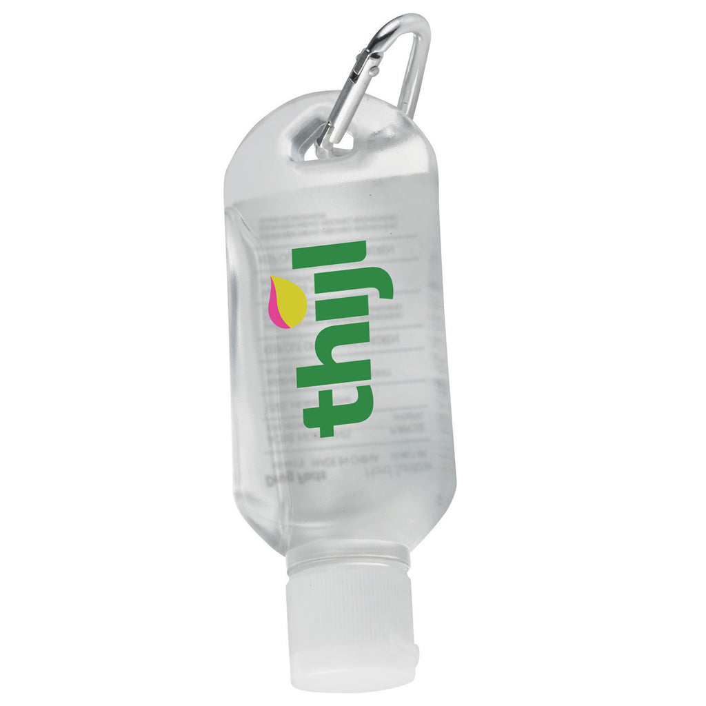 The Bullet 1.8oz Clip-N-Go Hand Sanitizer is an alcohol-based 1.8-ounce hand sanitizer in bottle with a flip-top lid and a 62% alcohol content. It includes a metal mini-carabiner to match the lid color.