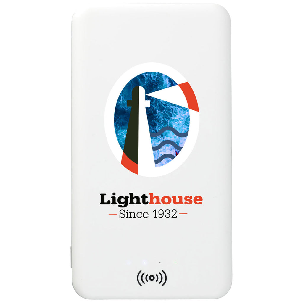 The Bullet White Axial 4000 mAh Wireless Power Bank with logo is an easy to use wireless power bank that provides power to charge smartphones, MP3 players, and other devices. Add a company logo to the power bank to give as a useful employee anniversary gift that can be used for a long time to come or try a custom logo to use as an event giveaway to promote your brand or organization. The simple power bank is great when your battery is running low, but you do not have time to charge in the typical manner. Place an order today.The minimum order for this product is 25 pieces.