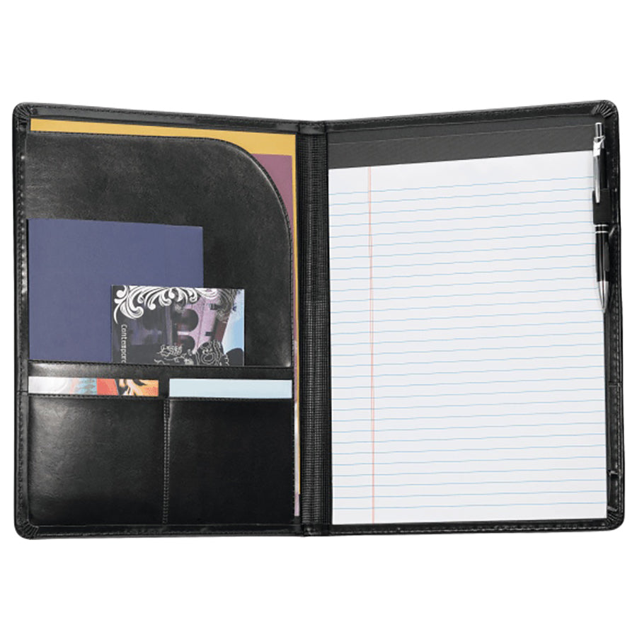 Make a lasting impression with the Associate Padfolio featuring FSC® Mix Paper. Designed with a sleek UltraHyde cover, this padfolio offers a refined look combined with functionality. The inside front panel includes a flap pocket and three horizontal pockets for organizing business cards, documents, and other essentials. It also contains a refillable 30-sheet ruled notepad (8.5" x 11.5"), perfect for taking notes or jotting down important information. Build your product assortment and boost your professional offerings—order now to enhance your inventory and impress your customers!