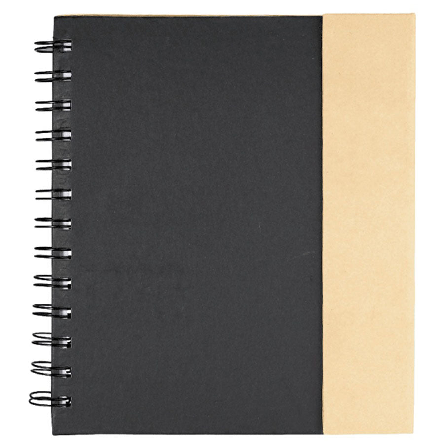 Upgrade your offerings with the 6.5" x 7" FSC® Mix Lock-it Spiral Notebook. Featuring a durable cardboard cover and spiral binding, this notebook is designed for both style and practicality. It includes 70 ruled pages for notes, along with 25 sheets of sticky memo pads (4" x 3") and 3" x 2" memo pads in five vibrant colors, ensuring your clients have all the tools they need for organization and quick notes. The magnetic closure and elastic pen loop add convenience, and the set comes with a recycled cardboard ballpoint pen. Order now to offer a functional, eco-friendly notebook that enhances your product range and impresses your clients with its versatile features!