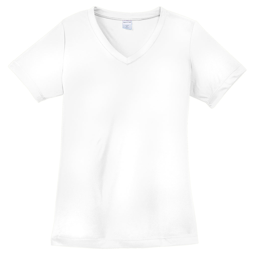 Enter the Sport-Tek Women's White PosiCharge Competitor V-Neck S/S T-Shirt, an item just begging for your customization, embroidery, and/or corporate logo. It makes a great, comfortable uniform for your employees and doubles as a classic t-shirt unsullied by obnoxious patterns and excessive branding.3.5 oz, 100% cationic polyester interlock