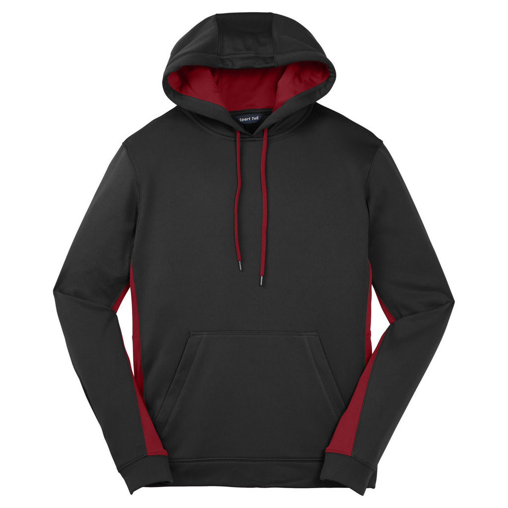 Sport-Tek Men's Black/ Deep Red Sport-Wick Fleece Colorblock Hooded Pullover